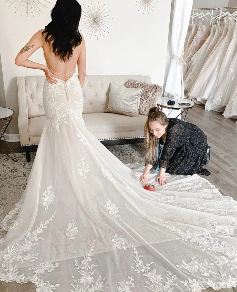 The gown undergoes precise fittings where every seam and adjustment is carefully tailored. Brides try on the dress multiple times to guarantee the perfect balance between elegance and comfort.